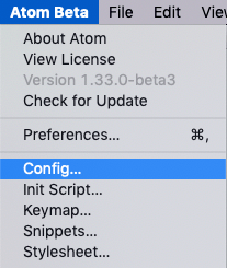 You can also easily open up that file by selecting the atom > snippets edit > snippets file > snippets menu.. . Go to atom main menu;